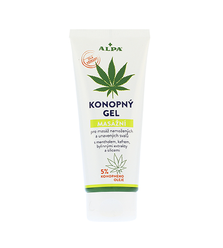 Alpa Konopný gel masážní obsahuje konopný olej lisovaný za studena, který si zachovává maximum účinných látek působících protizánětlivě a regeneračně. Je vysoce účinný při chronickém onemocnění kloubů (artróza, artritida), svalů, šlach a vaziva (revmatismus). Zklidňuje bolesti zad (při tzv. ústřelu) a končetin při otoku. Je také neocenitelným pomocníkem při sportovních a jiných fyzických aktivitách, uvolňuje křeče, pohmožděné a natažené svaly. Bezprostředně po aplikaci navozuje příjemný pocit uvolnění s mírně chladivým pocitem získaným přítomností mentolové silice. Gelová forma zaručuje rychlý průnik účinných látek k postiženému místu a nezanechává na pokožce lepivý pocit.