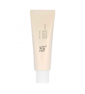 Ochranný pleťový krém Beauty Of Joseon Relief Sun Rice + Probiotics poskytne vaší pleti vysokou ochranu proti UV záření a zahrne ji intenzivní hydratací. Jeho lehká, vláčná textura se v okamžiku vstřebá, nelepí, neklouže a citlivou pleť obličeje nezatíží, ani když se rozhodnete být obzvláště štědří s dávkováním. Složení tohoto organického přípravku se opírá o blahodárné schopnosti extraktu z rýže (30 %) a fermentovaných obilovin, které ve tváři uzamykají vlhkost, vyživují ji a zvenčí podkreslují přirozeným, svěžím jasem.