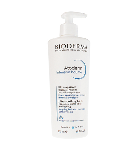 Balzám na tělo a obličej Bioderma Atoderm Intensive Baume zmírňuje příznaky atopické pokožky, poskytuje jí hydrataci a posiluje kožní bariéru. Má hypoalergenní složení vhodné pro dospělé, děti i kojence.