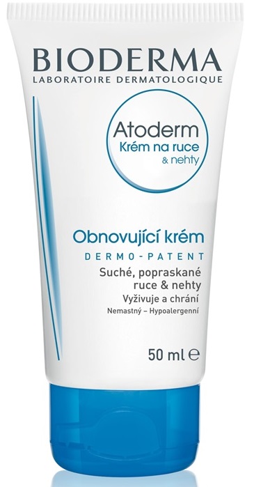 Krém na ruce Bioderma Atoderm Repair Hand Cream. Bioderma Atoderm Repair Hand Cream hloubkově vyživuje a regeneruje suchou a poškozenou pokožku rukou. Zklidňuje pokožku a zabraňuje jejímu vysušování. Ihned se vstřebává a nezanechává mastnou pleť.