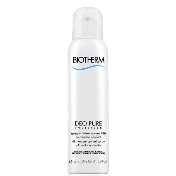 Antiperspirační sprej Biotherm Deo Pure svým účinným složením dlouhodobě zamezuje pocení a zároveň vás zahalí do příjemné vůně. Antiperspirační sprej Biotherm Deo Pure obsahuje zklidňující složku, která zamezuje podráždění i té nejcitlivější pokožky a zanechává jí svěží, jemnou, hydratovanou a voňavou po celý den.