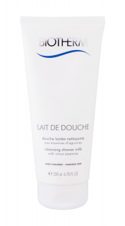 Biotherm Lait De Douche sprchový krém v sobě snoubí jemné pečující mléko a osvěžující výtažek z citrusů. Sprchový krém speciálně obohacený o zvláčňující ingredience dodává pokožce hydrataci, zatímco ji jemně čistí a odstraňuje nečistoty. Příjemná textura krému důkladně zbavuje mastnoty a nečistot, zatímco vyhlazuje suchá a drsná místa, a pokožku tak připravuje na aplikaci tělového mléka. Zahalte se do jemnosti, která dodá pokožce komfort a pocit čistoty. Biotherm Lait De Douche sprchový krém neobsahuje mýdlo. Po sprchování či koupeli nezanechává žádné stopy. Neobsahuje parabeny.