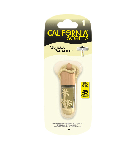 Vanilkový ráj. Pokaždé, když otevřete dveře Vašeho auta, uvítá Vás luxusní, útulná vůně vanilkového krému, vanilkového lusku a cukrové vaty, která ve Vás vyvolá vzpomínky na pečení cukroví, nebo váš oblíbený kopeček zmrzliny. Nechte ji viset po dobu až 45 dnů, poté ji vyměňte za jinou závěsnou lahvičku.