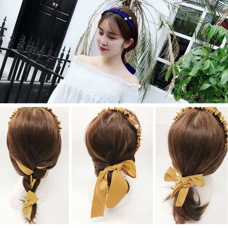Pomocí této stylové čelenky jednoduše vytvoříte nespočet různých originálních účesů. Hodí se jak na každodenní nošení, tak pro výjimečné události, jakou jsou oslavy, plesy nebo svatby. Čelenku nasadíte stejně jakou kteroukoliv klasickou. Stuhu pak můžete různě proplétat do vlasů, například do copánku nebo do drdolu. Snadno s ní vytvoříte i culík, který pak dozdobíte mašlí. Fantazii se rozhodně meze nekladou a způsobů, jak čelenku zakomponovat do účesu je nespočet. Čelenka je ozdobena jemnou perlou, kterou lze z čelenky sundat.
