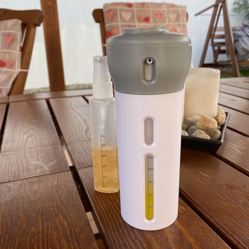 Praktická cestovní sada lahviček s dávkovačem, která Vám na cestách ušetří spoustu místa. Sada obsahuje celkem čtyři znovu naplnitelné lahvičky, do kterých můžete přelít například sprchový gel, tělové mléko, šampón, opalovací krém, mýdlo na ruce. Tyto lahvičky vložte zpět do dávkovače a otáčením si zvolte, jakou lahvičku chcete zrovna použít. Pak už stačí jen zmáčknout. Využít lze i na čistící domácí přípravky, mycí prostředky na nádobí nebo dezinfekční gel.