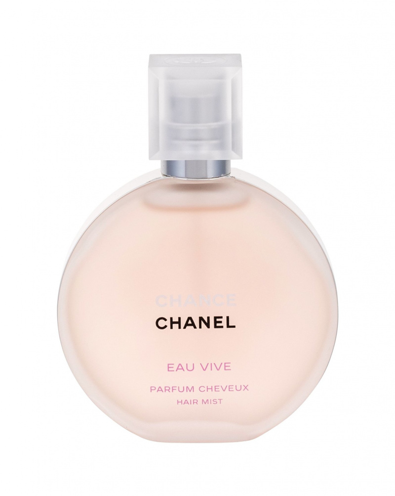 Dámská vlasová mlha Chanel Chance Eau Vive. Květinově dřevitá vůně pro ženy uvedena na trh v roce 2015 určená pro mladé ženy, které se nebojí života, baží po zábavě, odpočinku a dobrodružství, ale zároveň si zachovává punc dámy.