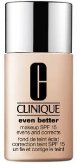 Clinique Even Better Makeup SPF15 make-up bez obsahu olejů. Tento make-up neplní pouze svou dekorativní funkci, ale také viditelně zlepšuje kvalitu pleti. Vaše pokožka tak bude vypadat dokonale, ať už s make-upem nebo bez. Na svém nenalíčeném obličeji zaznamenáte jasnější, jednotnější tón pleti a viditelně zredukované pigmentové skvrny už po 4 až 6 týdnech. Chrání pokožku před slunečním zářením.