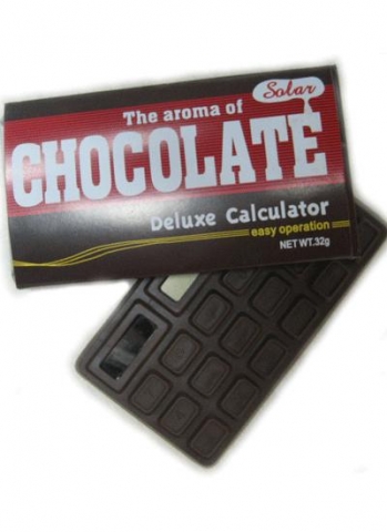 Plně funkční kalkulačka, která vypadá jako z čokolády, voní jako z čokolády, ale je vyrobená ze speciální gumy. Zaručujeme, že pokud tuto kalkulačku budete chtít darovat, tak obdarovaný začne po rozbalení kalkulačku okousávat :) Navíc kalkukačka je zabalena velice precizně tak, aby připomínala levnou neznačkovou čokoládu.