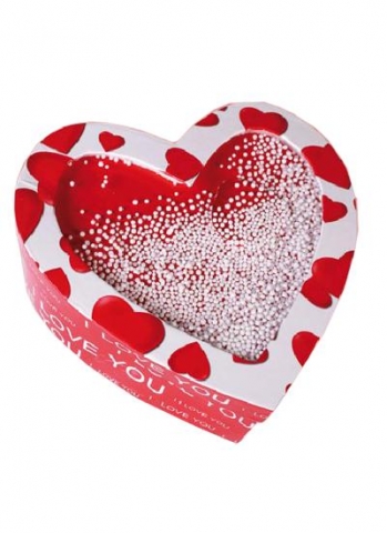Dárková krabice ve tvaru srdíčka o velikosti 21 cm, se kterou potěšíte každou romanticky založenou duši. Víčko krabičky je vykládané sněhově bílými kuličkami a papírovými srdíčky.