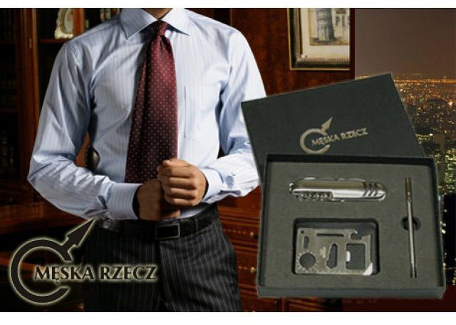 V této krásné praktické sadě dárkové sadě pro muže najdete elegantní peněženkové pero, multifunkční kreditní karta a multifunkční nůž.