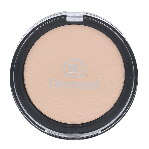 Dermacol Compact Powder kompaktní pudr s reliéfem krajky. Kompaktní pudr s dekorativním reliéfem krajky podtrhne přirozenou krásu tváře. Ultra lehká textura perfektně přilne k pleti a zůstane nezměněna po dlouhé hodiny. Po nanesení vytvoří na pleti sametový matující povrch, jemný na dotek. Obsahuje vitamin E, který má antioxidační účinky. Se svěží ovocnou parfemací.