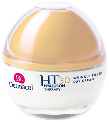 Remodelační denní krém Dermacol Hyaluron Therapy 3D Day Cream s čistou sférickou kyselinou hyaluronovou a silným protivráskovým komplexem. Obnovuje 3D strukturu a hustotu pokožky, vyplňuje vrásky a je tak alternativou hyaluronových injekcí. Okamžitě viditelný efekt: již první den zlepšuje pevnost pokožky o 35%, vzhled výrazových vrásek o 12%, redukuje povrch vrásek o 36% a jejich hloubku o 20%. Dlouhodobě navrací tváři kontury, viditelně vyhlazuje vrásky, zvyšuje tvorbu kolagenu a elastinu a omlazuje pleť. Zajišťuje celodenní hydrataci a svěžest pleti a zklidňuje ji. SPF 15 chrání pleť před slunečním zářením. Vhodné pro všechny typy pleti.