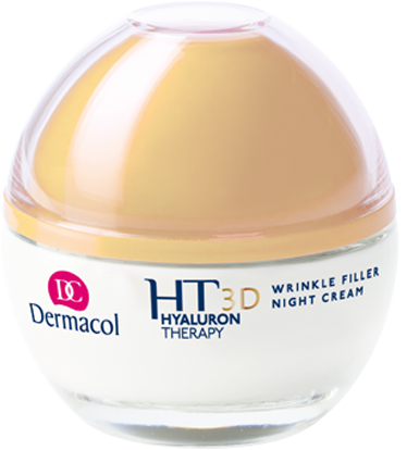 Remodelační noční krém Dermacol Hyaluron Therapy 3D Night Cream s čistou sférickou kyselinou hyaluronovou a silným protivráskovým komplexem. Obnovuje 3D strukturu a hustotu pokožky, vyplňuje vrásky a je tak alternativou hyaluronových injekcí.Okamžitě viditelný efekt: již první den zlepšuje pevnost pokožky o 35%, vzhled výrazových vrásek o 12%, redukuje povrch vrásek o 36% a jejich hloubku o 20%. Dlouhodobě navrací tváři kontury, viditelně vyhlazuje vrásky, zvyšuje tvorbu kolagenu a elastinu a omlazuje pleť. Zajišťuje intenzivní hydrataci, regeneraci a výživu pleti a zklidňuje ji. Vhodné pro všechny typy pleti.