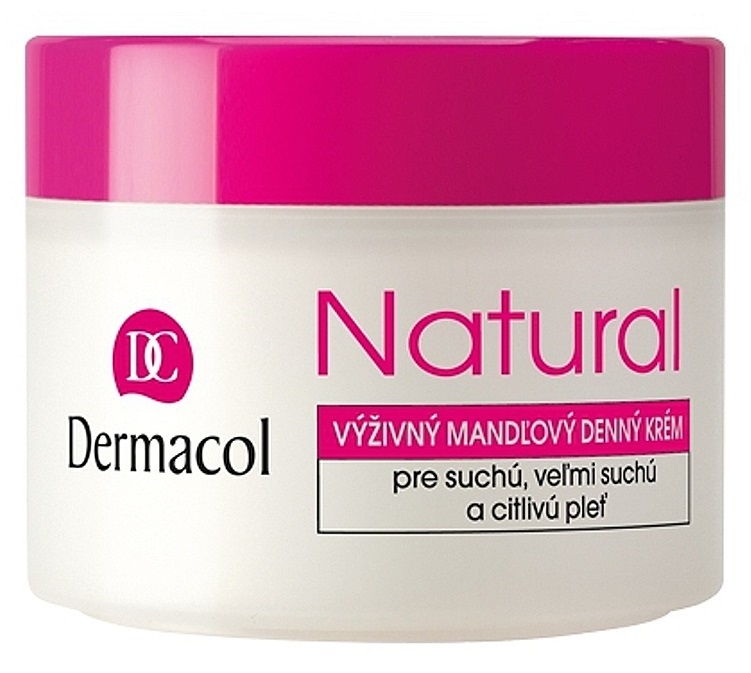 Vysoce výživný denní krém Dermacol Natural Almond s přírodním mandlovým olejem a koenzymem Q10 má silné regenerační účinky, předchází předčasnému stárnutí pleti, redukuje vrásky a napomáhá obnově buněk. Zvláčňuje a zklidňuje podrážděnou pleť a zmírňuje pocity pnutí. Obnovuje ochrannou bariéru pleti, zabraňuje ztrátám vody z pokožky a chrání ji před volnými radikály a negativními vlivy prostředí. Krém je vhodný pro suchou, velmi suchou a citlivou pleť.
