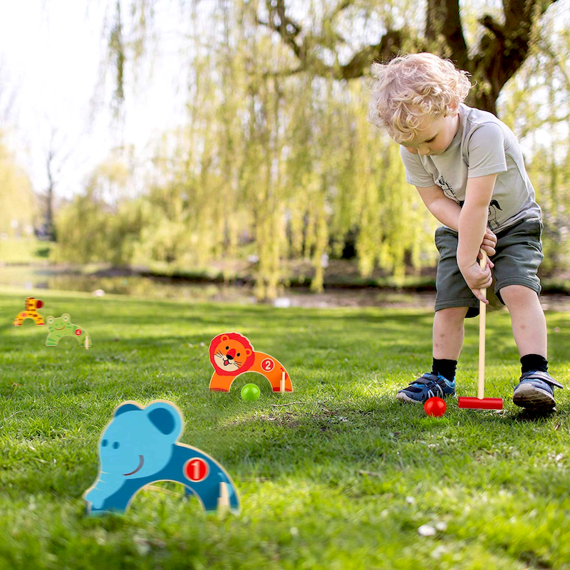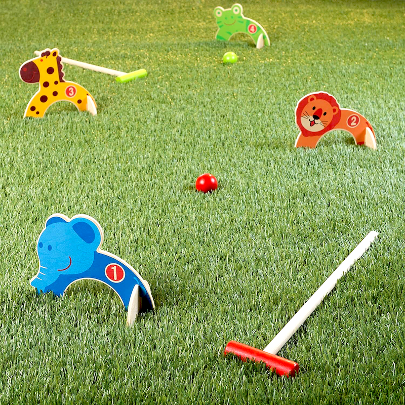 Veselá a barevná zvířátka obsahují číslice 1–4. Zvířátka rozmístěte tak, aby od sebe měla odstup (čím větší vzdálenost, tím je hra náročnější). Účelem hry je dostat míček skrz všechna zvířátka za pomocí pálky. Kroket lze hrát ve 2 hráčích nebo ve 2 týmech, kdy se jednotliví hráči střídají v úderech.