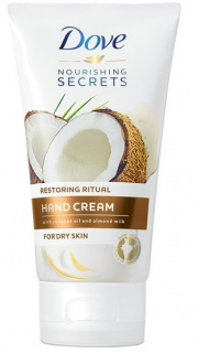 Krém na suché ruce Dove Nourishing Secrets Restoring Ritual je inspirován starým zkrášlujícím rituálem indických žen. Účinně hydratuje suchou pokožku rukou. Složení obohacené o kokosový olej a mandlové mléko dodává pokožce zpět ztracenou hydrataci. Krém se rychle vstřebává a nezanechává na pokožce mastný film. S krémem na suché ruce Nourishing Secret Restoring Ritual budou Vaše ruce hydratované, jemné a krásně provoněné.