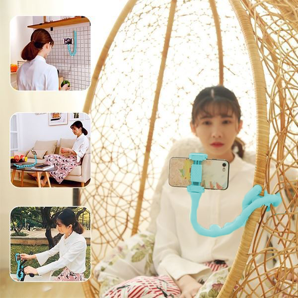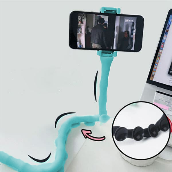 Skvělý držák na telefon, který lze umístit prakticky kamkoliv! Silikonový držák připomínající chapadlo chobotnice pomocí přísavek jednoduše připevníte na dlaždičky, vanu nebo stůl, a vytvarujete do vámi potřebné polohy. Lehce ho využijete i v terénu, protože ho lze obmotat například kolem větve stromu či lavičky. Držák je vyroben z pevného materiálu, který spolehlivě váš telefon udrží. Využívat ho tedy můžete například v kuchyni při vaření, ve vaně při sledování vašich oblíbených pořadů, v kanceláři při vyřizování pracovních hovorů, na kole, v autě nebo v přírodě při focení.