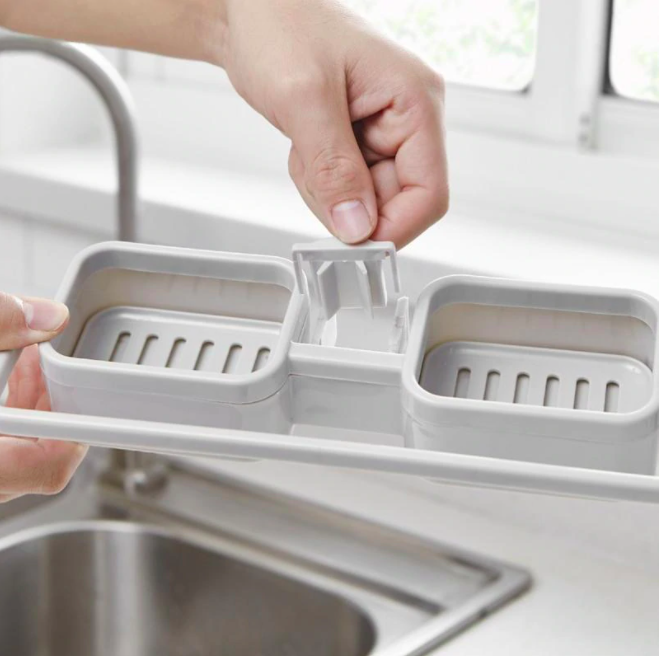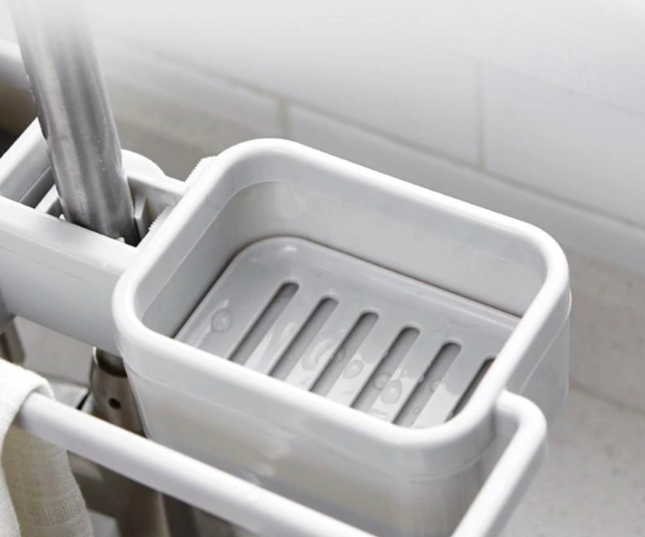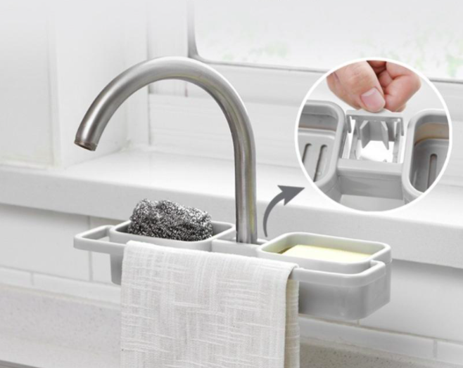 Chcete, aby měly houbičky na nádobí své místo? Pak je tento organizér přesně pro vás. Použít ho ale můžete také do koupelny, například na zubní kartáčky a pastu nebo do sprchového kouta na mycí prostředky. Jeho použití je zkrátka variabilní. Jednoduše ho zavěsíte okolo kohoutku ve dřezu nebo ve sprše. Je lehce omyvatelný. Mějte věci na svém místě a vždy po ruce.