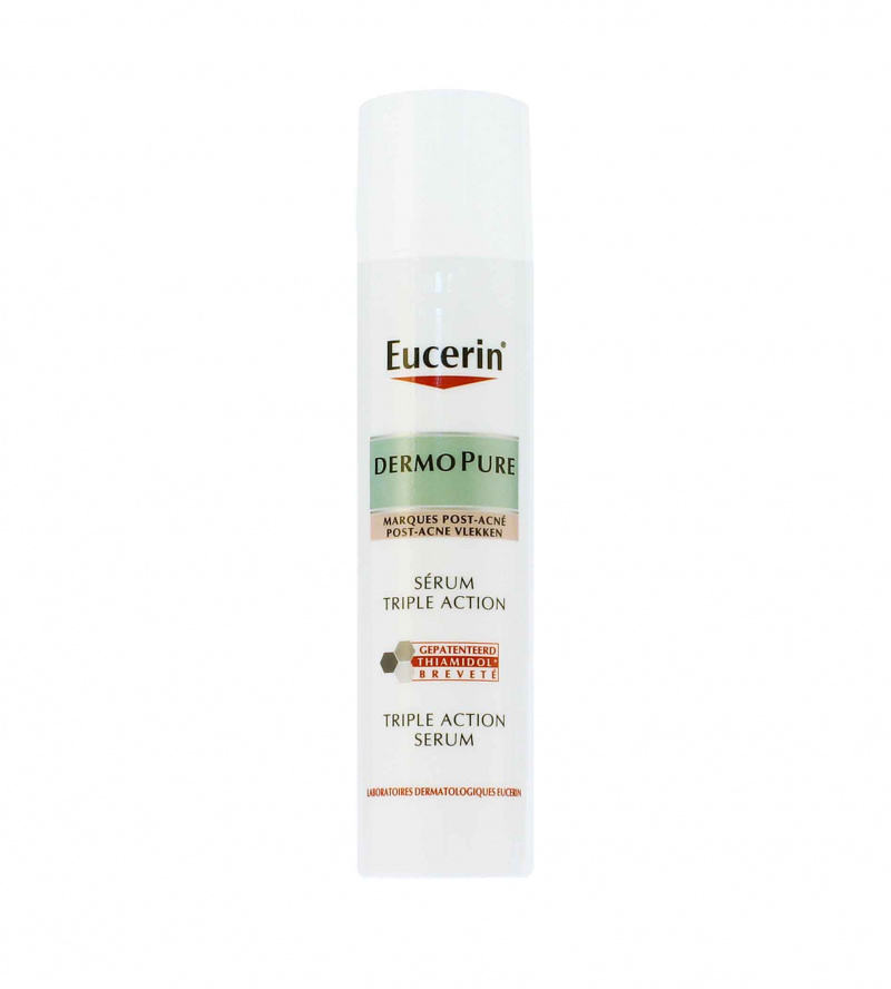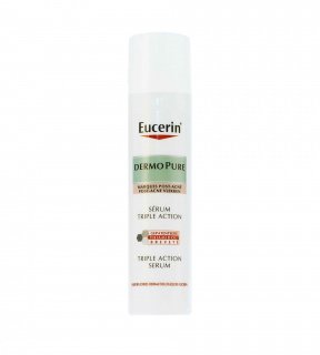 Pleťové sérum s trojitým účinkem Eucerin DermoPure pomáhá redukovat nedokonalosti pleti, pigmentové skvrny a zároveň také reguluje lesk pleti. Pokud tedy i Vás trápí mastná a aknózní pleť s pigmentovými skvrnami, pak je tato péče s nemastným složením vhodná právě pro Vás.