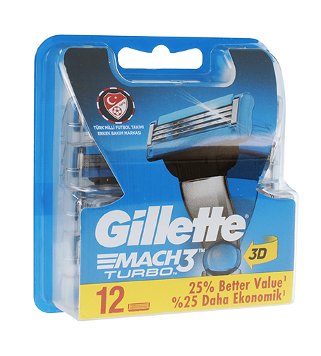 Gillette Mach 3 Turbo náhradní hlavice do ručního holicího strojku. Břity lze použít ve všech trojbřitých strojcích typu Mach 3 – Mach3 , Mach3 Turbo , nebo Mach3 Power. Je určen pro dokonalejší oholení s minimálním podrážděním pokožky, i když se holí proti směru růstu vousů. Tři Anti-Friction břity (snižují tahání vousů) Mach 3 Turbo oholí každý vous ještě důkladněji s menším podráždením. Měkké, ochranné mikrolamely opatrně napínají pokožku, a proto holení je rovnoměrně a bez nadměrného tlaku na pokožku. Vylepšený indikační zvlhčující pásek pomáhá strojku Mach 3 Turbo hladce se klouzat po pokožce i při velmi častém holení.