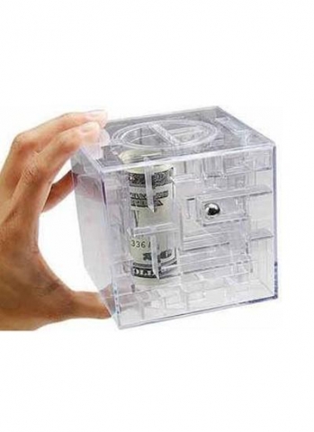 Peníze se zavřou do středu labyrintu a dokud nedostanete kuličku tam kam patří tak se kasička neotevře.