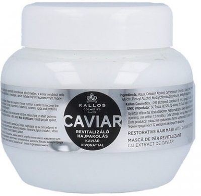 Maska na vlasy Kallos Caviar Restorative Hair Mask posiluje vlasy a dodává jim hebkost a oslnivý lesk. Složení je obohaceno o kaviár, který vlasy posiluje a zvyšuje jejich odolnost. Obsahuje vitamíny a minerály, které vlasy hloubkově vyživují a hydratují. Po použití budou vlasy silnější, odolné a lesklé.