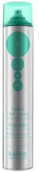 Kallos Hair Spray Extra Strong Hold With Keratin extra silný lak na vlasy s keratinem poskytuje pružné a pevné zpevnění. Díky výjimečnému složení s obsahem keratinu dodává vlasům sílu a vyživuje jejich strukturu. Obsahuje UV filtr. Aplikujte na suché vlasy.
