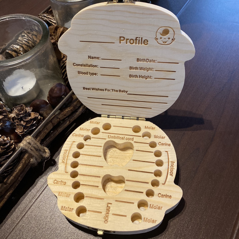 Vzpomínky vašich dětí nejen v podobě fotek. Roztomilá dřevěná krabička slouží k uchování vypadaných mléčných zoubků. Každý zoubek má své místo. Do krabičky však můžete ukládat i jiné cennosti, například první vlásky. Na krabičku je možné si zaznamenat osobní údaje vašich dětí, jako je jméno a datum narození. Jednou až děti vyrostou, můžete si vzpomínky prohlédnout společně. Třeba pobavíte děti i veselými příběhy, které jsou se zoubky spojené. Dřevěná krabička na mléčné zoubky je dodávána v roztomilém designu děťátka chlapečka nebo holčičky. Je také skvělým dárkem od Zoubkové víly.