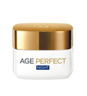 Noční omlazující krém L’Oréal Paris Age Perfect rozjasní kontury vašeho obličeje a obnoví elasticitu pleti. Krém dodává zralé pleti potřebné množství kalcia a chrání ji před UV zářením. Účinné složení zároveň podporuje buněčnou aktivitu a podporuje elasticitu pleti. Díky pravidelnému používání krému Age Perfect získá vaše pleť pevnější strukturu, hutnost a mladistvý jas. Lze používat nejen na obličej, ale také na krk a dekolt. Noční omlazující krém L’Oréal Paris Age Perfect je vhodný pro ženy nad 50 let.