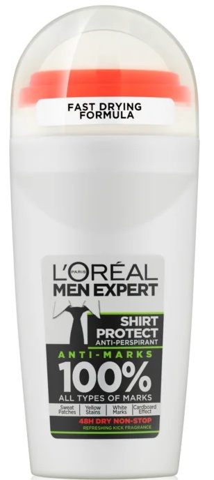 Antiperspirant L´Oréal Paris Men Expert Shirt Protect chrání pokožku proti pocení a zápachu až po dobu 48 hodin. Zároveň chrání oblečení před vznikem bílých a žlutých stop.