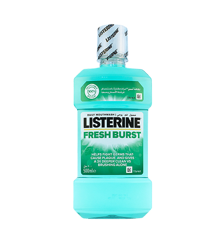 Ústní voda Listerine Mouthwash Fresh Burst poskytuje účinnou ochranu proti zubní plaku. Zároveň ničí bakterie v mezizubním prostoru a dodává svěží dech.