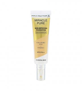 Make-up inspirovaný pleťovou péčí Max Factor Miracle Pure za pouhou jednu minutu a jednu kapku vyplní pleť a zanechá ji zářivou, pevnou, pružnou a vláčnou. Pokročilé složení obsahuje 89 % látek ideálních pro péči o pleť včetně vitamínu C a kyseliny hyaluronové a poskytuje 24hodinovou hydrataci. Ochranný faktor SPF 30 ji zároveň chrání před škodlivým slunečními paprsky aby si zachovala mladistvý vzhled co nejdéle.