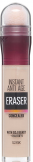 Korektor Maybelline Instant Age Rewind Eraser, vítěz soutěže Allure's Best of Beauty Award pro rok 2018, zakrývá a eliminuje tmavé kruhy a jemné linky v okolí očí. Vytvoří zářivý a osvěžený pohled díky bobulím goji a Haloxyl™. Pomocí houbičkového aplikátoru se snadno nanáší a přilne k pleti pro přirozený vzhled. Otočte dolní částí aplikátoru a korektor se dostane do houbičky. Naneste malé množství do oblasti pod očima pro zakrytí tmavých kruhů a otoků. Pro rozzáření aplikujte do tvaru trojúhelníku pod oči a podél hrany nosu.