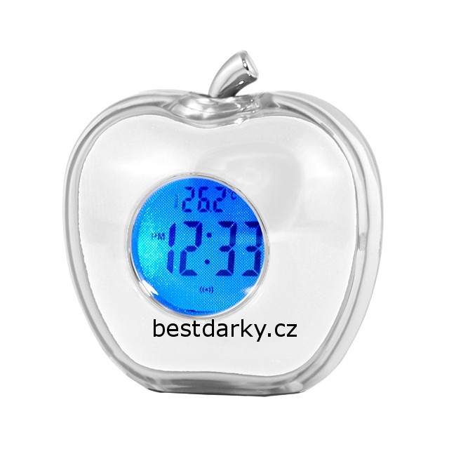 Budík s pěkným designem, který má i něco navíc…To je mluvící budík Jablko. Nejenže hezky vypadá, ale díky němu nemusíte ani v noci otevřít oči, abyste zjistili, kolik je hodin. Budík vám to řekne sám a ještě vám prozradí, jakou teplotu máte v místnosti. A jaký tón vás bude budit? Tóny můžete střídat. Budík má pět různých zvukových signalizací.