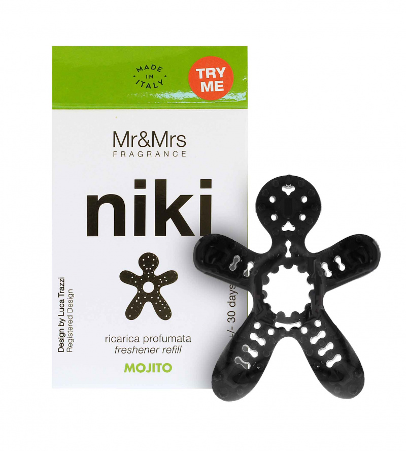 Mojito. Vaše vůně do auta Niki už nevoní? Není nic snazšího než ji vyměnit za novou. Výhodná cena, dlouhotrvající vůně od italského výrobce Mr&Mrs Fragrance rozvoní vaše auto. Náhradní náplň je vyrobena z parfémované pryže a vydrží vonět po dobu až 30 dní.