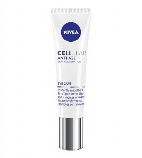 Spolehněte se na oční krém, který v sobě ukrývá účinné tajemství - ingredience aktivující buňky vaší pleti k tomu, aby dokázaly produkovat svoji vlastní kyselinu hyaluronovou a kolagen. Právě to jsou totiž látky, které zpevňují pleť a redukují vrásky. Nivea Hyaluron Cellular Filler zpevňující oční krém zlepšuje pevnost pleti, vyplňuje vrásky kolem očí, intenzivně hydratuje citlivou pleť kolem očí. Složení bez parfému je šetrné k citlivému očnímu okolí. Dermatologicky testováno a schváleno. S obsahem kyseliny hyaluronové s výtažky z magnolie. Krém by se měl nanášet pouze na čistou pleť. Oči si nejdříve pořádně odličte. Naneste malé množství krému na pleť kolem očí. Bříšky prstů vklepávejte krém do pleti, dokud se úplně vstřebá. Postupujte jemně, při aplikaci úplně vynechte nehty. Pro ještě lepší a rychlejší výsledek použijte také sedmidenní Intenzivní hyaluronovou kúru Hyaluron Cellular Filler.