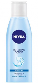 Osvěžující čistící pleťová voda Nivea Refreshing Toner hloubkově čistí a odstraňuje zbytky nečistot. Hydratuje pleť a udržuje její přirozenou hydrataci v rovnováze. Osvěžující složení obohacené o vitamín E a aktivní látku Hydra IQ rozjasňuje pleť.