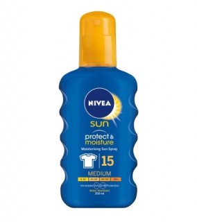 Ochranný opalovací přípravek Nivea Sun Protect & Moisture je nezbytnou součástí péče o pokožku při pobytu na slunci. Přípravek je voděodolný. Dodává pokožce potřebnou hydrataci. Před pobytem na slunci naneste v dostatečném množství na pokožku celého těla. Opakujte podle potřeby, zejména po koupání, osušení ručníkem nebo při nadměrném pocení.