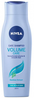Šampon pro jemné vlasy Nivea Volume Sensation Shampoo posiluje vlasy už od kořínků. Během mytí o vlasy intenzivně pečuje, ale nezatěžuje je. Dodá vlasům impozantní objem.