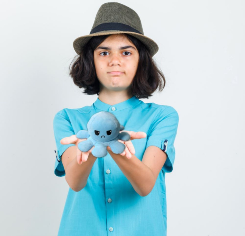 Ukažte svou náladu beze slova. Oboustranná plyšová chobotnička je z jedné strany usměvavá, z druhé zašklebená. Pro změnu obličeje stačí obrátit chobotnici naruby. Krásná hračka pro děti, se kterou si užijí spoustu zábavy!