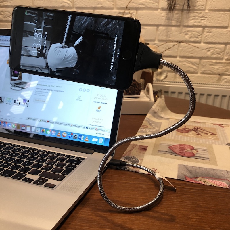 Praktický kabel, který má hned několik způsobů využití. Slouží jako nabíječka, ale i jako flexibilní držák telefonu. Balení obsahuje dva držáky, díky kterým můžete mít pevné uchycení jak v autě, tak i na stole. Kabel je kompatibilní s Apple zařízeními, které používají lightning konektor (iPhone 5 a vyšší). Kabel se dá díky svým vlastnostem různě ohýbat a tvarovat, takže si jej snadno přizpůsobíte svým momentálním potřebám, ať už je to sledování oblíbených pořadů, pracovní video-hovory, či sledování navigace v autě.