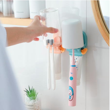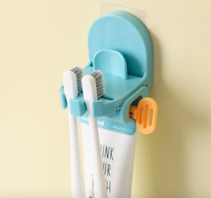 Perfektní držák na zubní kartáčky a pastu. Tento jedinečný organizér obsahuje zarážky na dva zubní kartáčky a prostor na umístění tuby se zubní pastou. Díky speciálnímu systému si zubní pastu nadávkujete dle potřeby přímo z držáku a zároveň vytlačíte pastu z tuby úplně celou, takže zbytečně neplýtváte! Držák také obsahuje stojan na kelímek na vypláchnutí úst. Instalace organizéru je velmi jednoduchá, stačí pouze nalepit na vámi zvolené místo, netřeba nic nikam složitě vrtat.