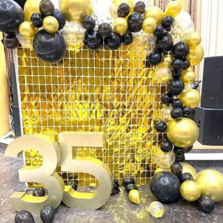 Originální dekorace sálu, která každou párty posune ještě o level výš. Závěs ve zlaté barvě využijete například do fotokoutku, jako dekoraci pozadí u narozeninových dárků, na silvestrovskou párty a mnoho dalších oslav či večírků. Závěs bude skvěle vypadat v kombinaci s dalšími dekoračními doplňky, například s nafukovacími balónky.