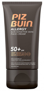 Opalovací krém na obličej PIZ BUIN Allergy Sun Sensitive Skin Face Cream SPF50+ chrání pleť před škodlivým slunečním zářením. Dodává pokožce potřebnou hydrataci během celého dne. Jemné složení se ihned vstřebává a nezanechává mastný pocit. Ochranný faktor SPF50+. Aplikujte na pleť sluněním. Opakujte dle potřeby, především po koupání nebo osušení.