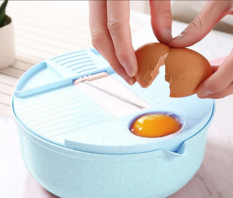 Praktická a multifunkční vychytávka do kuchyně s mnoha možnostmi využití! Na první pohled obyčejná miska, která vás ale záhy překvapí svou multifunkčností. Funguje jako cedník na oplachování ovoce nebo zeleniny. Zároveň je vybavena zobáčkem na výlev těsta nebo omáčky. Součástí je nasazovací rukojeť, která je snadno odnímatelná. Na misku se nasazuje speciální poklop, který ji ihned promění v kráječ či struhadlo. Uprostřed poklopu je totiž místo, do kterého zasunete jeden ze tří speciálních nástavců – na krájení, strouhání nebo drcení. Dále je zde prostor pro tření česneku a oddělovač žloutků. Na závěr stačí misku umýt běžným mycím prostředkem na nádobí a opláchnout.