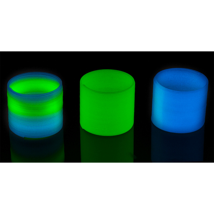 Pozor! Legendární duhová skákací pružina je zpět! Tentokrát ve svítící verzi. Můžete ji různě natahovat, namotávat, převalovat v dlaních nebo ji pustit ze schodů a sledovat, jak se sune dolů jako housenka. Svítící pružina je skvělá zábava nejen pro děti.