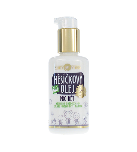Unikátní směs pečujících bio olejů a bylinných extraktů pro citlivou pokožku dětí i maminek. Purity Vision Bio měsíčkový olej pro děti je díky svému 100% přírodnímu čistému složení vhodný pro každodenní péči o všechny typy pokožky včetně citlivé a ekzematické. Má vysoké regenerační schopnosti, přispívá k?obnově přirozené ochranné vrstvy, zabraňuje vysušování a zanechává pokožku hedvábně hladkou.
