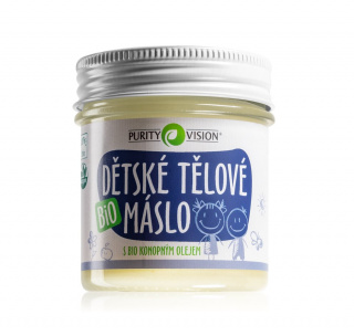 Purity Vision Bio Dětské tělové máslo speciálně vyvinuto pro miminka, citlivou, problematickou a suchou pokožku. Přípravek Purity Vision Kids jemně pečuje o dětskou pokožku a dodává jí potřebnou hydrataci. Přiměřené množství přípravku jemně vmasírujte do čisté a suché pokožky a nechte vstřebat.