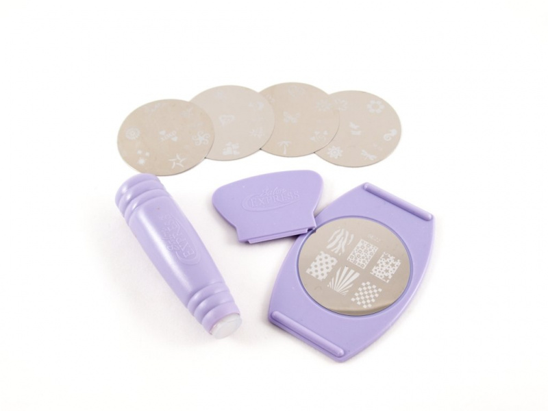 Použití je velmi jednoduché. Stačí destičku potřít lakem, setřít stěrkou, obtisknout na tiskátko a pak už jen přenesete na nehet.