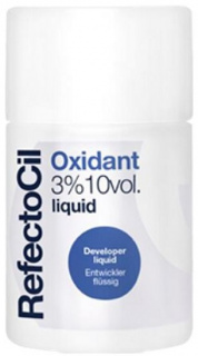 Tekutý oxidant Oxidant 3% 10vol. Liquid slouží ke stabilizaci barev na obočí a řas RefectoCil. Oxidant se smíchá s barvou, čímž se docílí požadovaného barvícího efektu. 100 ml balení vystačí cca na 200 použití. Pouze pro profesionální použití! Oči musí být zavřené až do úplného vyčištění! Použítí: Nejprve si odličte a odmaštěte řasy a obočí pomocí odličovacího přípravku RefectoCil Eye Make-up Remover, aby přípravek měl, co nejlepší účinek. Řasy a obočí musí být dokonale čisté a suché. Poté Použijte ochranné podložky Aldiren Beauty & Elegance, aplikujte ochranný krém RefectoCil Skin Protection Cream Tube na spodní oční víčko, stejně tak na spodní stranu ochranného papírku. Položte ochranný papírek, co nejblíž k řasám, aby se dostala barva na pokožku v co nejmenším množství. Smíchejte v plastové misce 10 kapek RefectoCil Oxidant liquid s 2 cm barvy na řasy a obočí RefectoCil pomocí přiložené tyčinky. Naneste barvu na řasy pomocí tyčinky RefectoCil nebo zkoseného štětečku RefectoCil Cosmetic Brush dokud nejsou zcela pokryty barvou. Pokud chcete barvu nanést na řasy aplikujte ji pomocí tyčinky RefectoCil nebo zkoseného štětečku RefectoCil Cosmetic Brush ve směru růstu chloupků. Nechte působit 5 – 10 minut, podle Vámi určené intenzity. Setřete přebytečnou barvu pomocí vaty. Pokud se barva dostane na pokožku odstraňte ji rychle odstraňovačem RefectoCil Tint Remover. Upozornění – Tint Remover se nesmí dostat na řasy nebo do bezprostřední blízkosti očí. Šetrně odstraňte ochranné papírky ve směru oka. Suchou vatou odstraňte přebytečnou barvu. Pokud přesto zůstane přebytečná barva odstraňte ji pomocí vody a vaty.